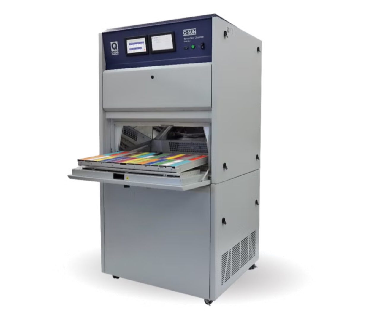 Q-SUN Xe-3氙燈老化試驗箱的顯示屏設(shè)計實用且易于使用。Q-SUN 試驗箱具有雙全色觸摸屏顯示屏,可使用 17 種用戶可選語言進(jìn)行編程(英語、法語、西班牙語、意大利語、德語、中文、韓語、日語、捷克語、荷蘭語、波蘭語、葡萄牙語、俄語、瑞典語、泰語、土耳其語和越南語)。該系統(tǒng)包括完整的自我診斷錯誤檢查,持續(xù)監(jiān)控所有系統(tǒng)的狀態(tài)和性能。它還會根據(jù)需要顯示試驗箱錯誤消息和常規(guī)服務(wù)提醒。多色 LED 狀態(tài)指示燈讓用戶一目了然地了解試驗箱的運行狀態(tài)。