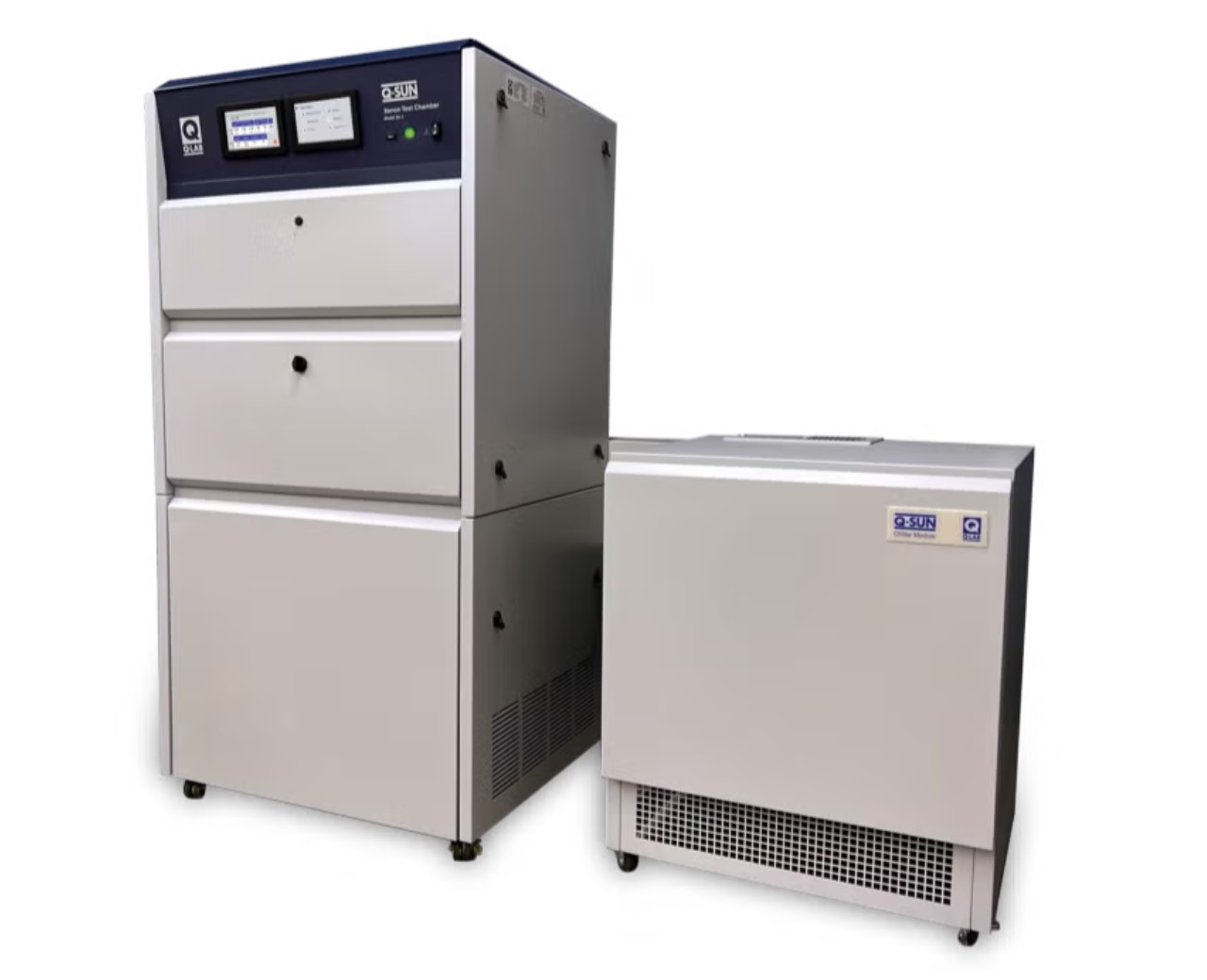 對于某些室內(nèi)產(chǎn)品(例如藥品和化妝品),需要較低的測試溫度以防止非自然降解。Xe-3試驗箱可選配制冷機,以在測試此類熱敏材料時降低溫度,例如 ICH指南 協(xié)議。使用制冷機,Q-SUN Xe-3氙燈老化試驗箱可以在黑板溫度低至 31 °C 和 50%相對濕度下運行,具體取決于傳感器類型、輻照度水平、濾光片類型、燈管使用年限以及室溫和濕度。Xe-3 制冷機設(shè)計為與全尺寸 Xe-3試驗箱并??排放置,并配有輪子,便于重新定位。